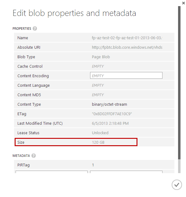 Good, everything looks okay. Going back to the Azure console, let's edit the blob and check out the details: